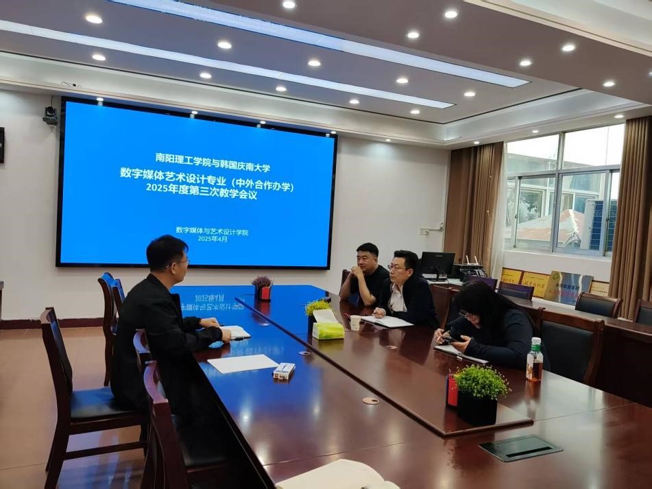 4月9日下午,我院在小会议室召开数字媒体艺术设计专业中外合作办学项目2025年度第三次教学会议,院长韩义波,庆南大学驻中方代表贾一凡出席会议,数字媒体艺术设计教研室主任和教务办成员参加,会议由教学院长孟祥芸主持。