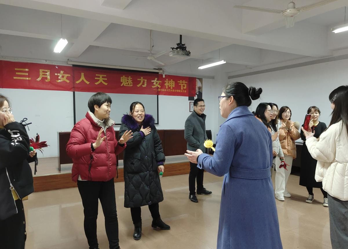 阳春三月,桃花盛开,“三八”国际劳动妇女节如约而至。为更好的庆祝该节日,同时丰富我院广大女性教师的文化娱乐活动,缓解紧张繁忙的工作压力,8日上午我院在8号教学楼错峰开展“三月女人天,魅力女神节”主题趣味活动。活动分为四个环节:“一垫、二踢、三猜、四合”,个人项目的垫球跑和踢毽子锻炼教师们的运动能力,合作项目的“你比我猜”及“联合传球”增强了教师间的合作能力,也增进了感情联络。