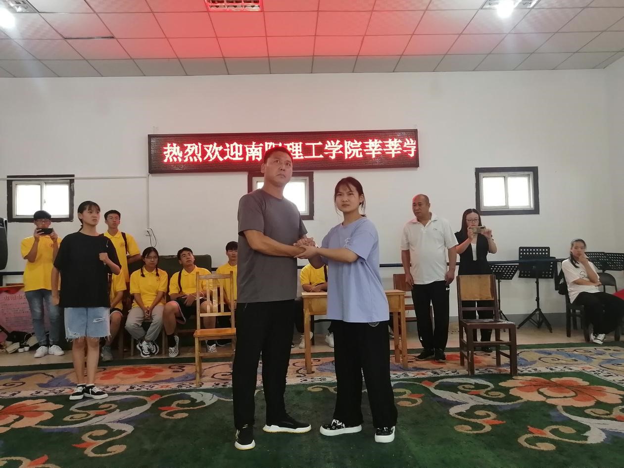 在南阳市豫剧团,团队成员欣赏了经典豫剧《红色娘子军》、《红灯记》,唱腔铿锵大气、抑扬有度、行腔酣畅、吐字清晰、韵味醇美、生动活泼、有血有肉,赢得了现场同学热烈掌声。表演结束后,团队成员纷纷上台与演员合影,并亲身体验、亲自感受豫剧的神奇之处,在演员的专业指导下做起简单的“表演”。