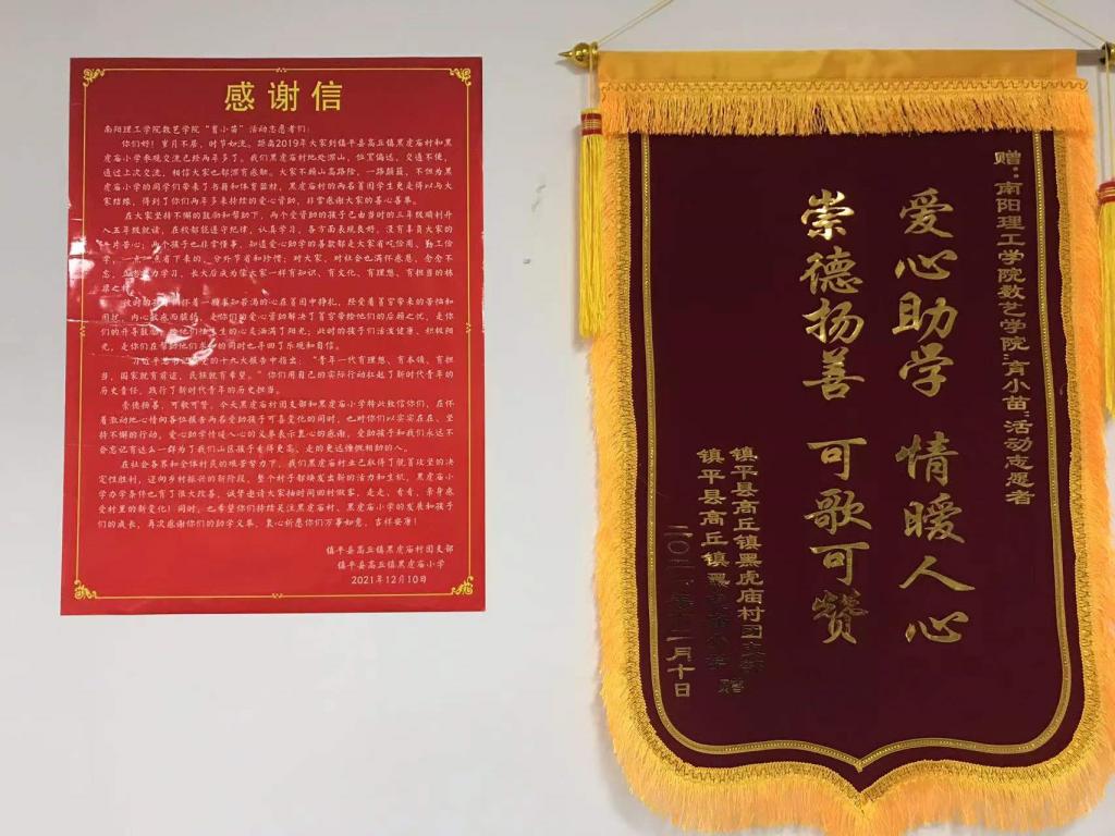 本网讯(特约记者/唐振海)近日,一封来自镇平县黑虎庙小学的感谢信邮寄到了数字媒体与艺术设计学院,感谢该院“育小苗”志愿活动的志愿者们。