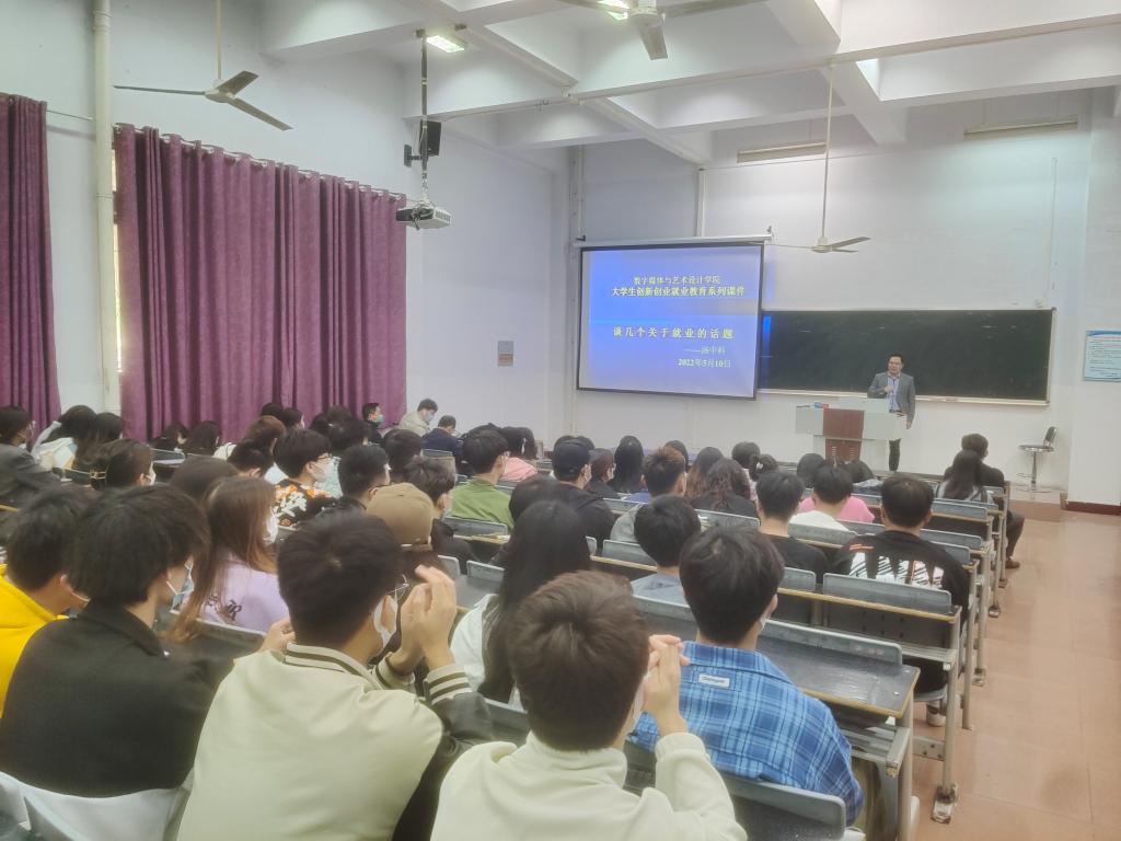 为了使同学们认清就业形势,提升就业积极性,也为了解答同学们关于就业问题的疑惑,帮助毕业生早日找到一份心仪的工作,5月10日,数字媒体与艺术设计学院在8教101教室召开就业指导讲座,由学院党委副书记汤中科主讲,部分毕业生参会。