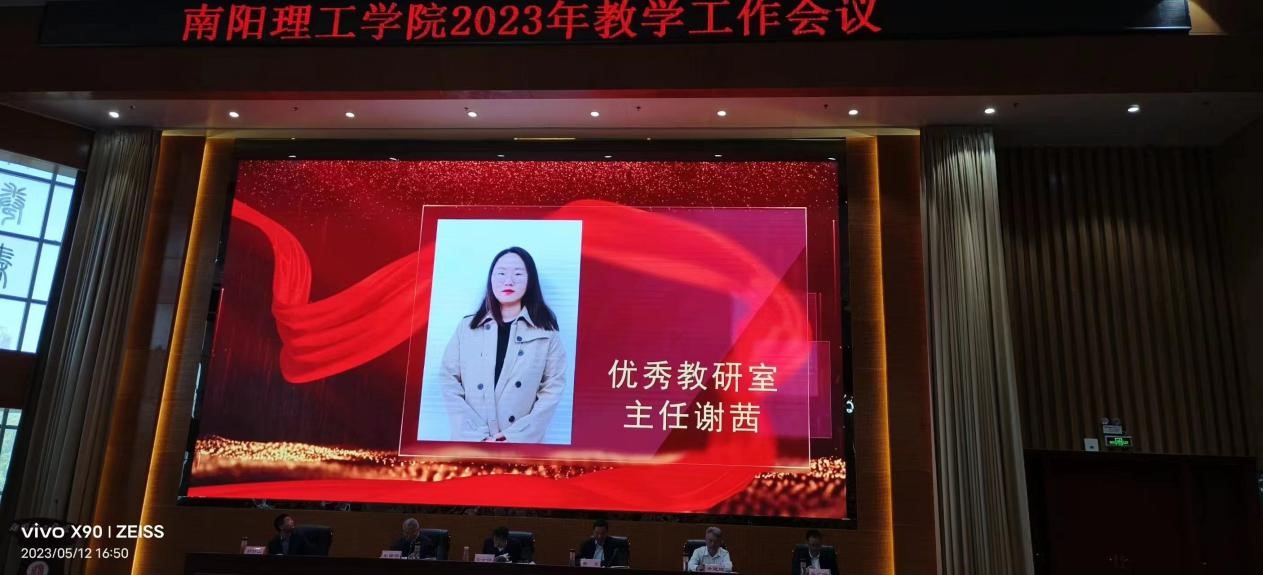 5月12日在南阳理工学院2023年度教学工作会议上,数字媒体与艺术设计学院视觉传达设计教研室获评优秀教研室,谢茜获评优秀教研室主任。