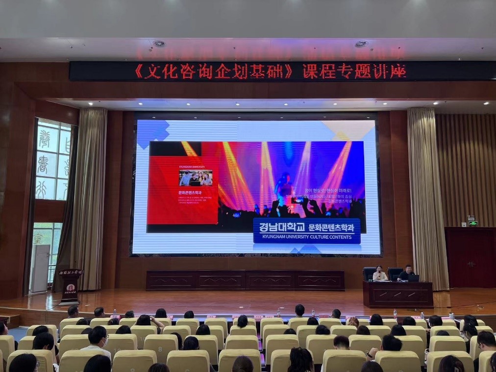 下午,俞容在(YOO YOUNGJAE)教授数字在第三报告厅开展《文化咨询企划基础》课程专题讲座,《文化咨询企划基础》课程是数字媒体艺术设计中外合作办学专业的引进课程,俞教授对其在我院讲授该课程的过程做了回顾和总结。