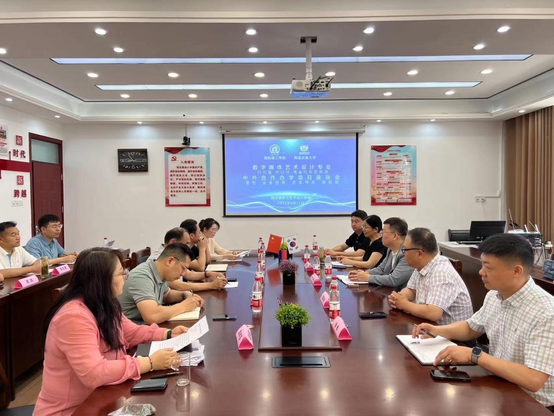 本网讯(特约记者/张天赐)6月12日上午,数字媒体与艺术设计学院在8号楼2楼会议室举办中外合作办学项目座谈会。韩国庆南大学文化资讯系学科长俞容在(YOO YOUNGJAE)教授、教务处处长朱清慧、国际交流合作中心处长高东晓、数字媒体与艺术设计学院相关负责人和数字媒体艺术设计中外合作办学专业相关授课教师参加了座谈。