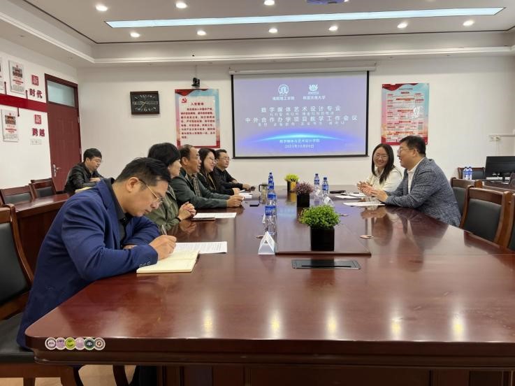 10月9日上午,数字媒体与艺术设计学院召开了与韩国庆南大学合作办学项目教学工作会议。会议由薛庆吉院长主持,庆南大学学科长俞容在(YOO YOUNGJAE)教授、数字媒体与艺术设计学院班子成员及数字媒体艺术设计专业负责人参加会议。会上,薛庆吉介绍了现阶段中外合作办学项目教学情况和取得的成果。教学院长孟祥芸等人就下一阶段教学模式改进、中韩双方教师共建课程等问题与俞容在教授进行了交流和讨论。