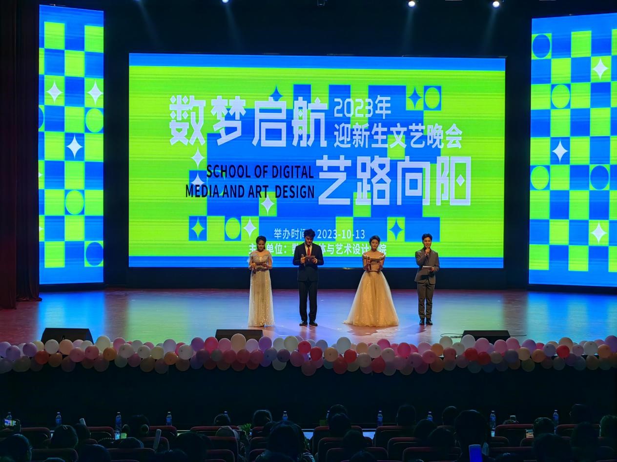 本网讯(特约记者/陈苗苗)为热烈欢迎2023级新生的到来,营造高雅浓厚的校园文化氛围,10月13日晚19点,数字媒体与艺术设计学院在东校区音乐大厅隆重举行“数梦启航 艺路向阳”2023年迎新生文艺晚会,数字媒体与艺术设计学院党政领导班子、学院部分教师、全体辅导员及2023级新生共聚一堂,齐赴这场属于青春的视听盛宴。
