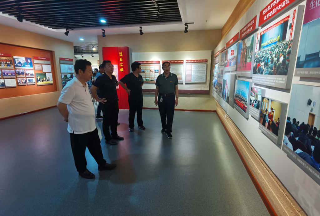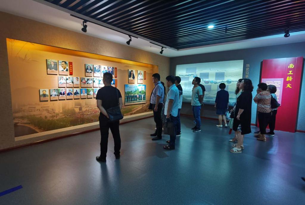 活动伊始,在薛庆吉院长的带领下,同志们认真观摩馆内展品,跟随图片、文字和无数的荣誉奖杯深刻感悟南工三十三年发展历程。33载筚路蓝缕、风雨兼程,一辈辈南工人用艰苦奋斗和永不言弃的精神叠加成教育灯塔,延伸着南工的文化高度;33载薪火相继、砥砺前行,一代代南工人用血脉传承着文化衣钵,接力着厚德博学的精神风骨。