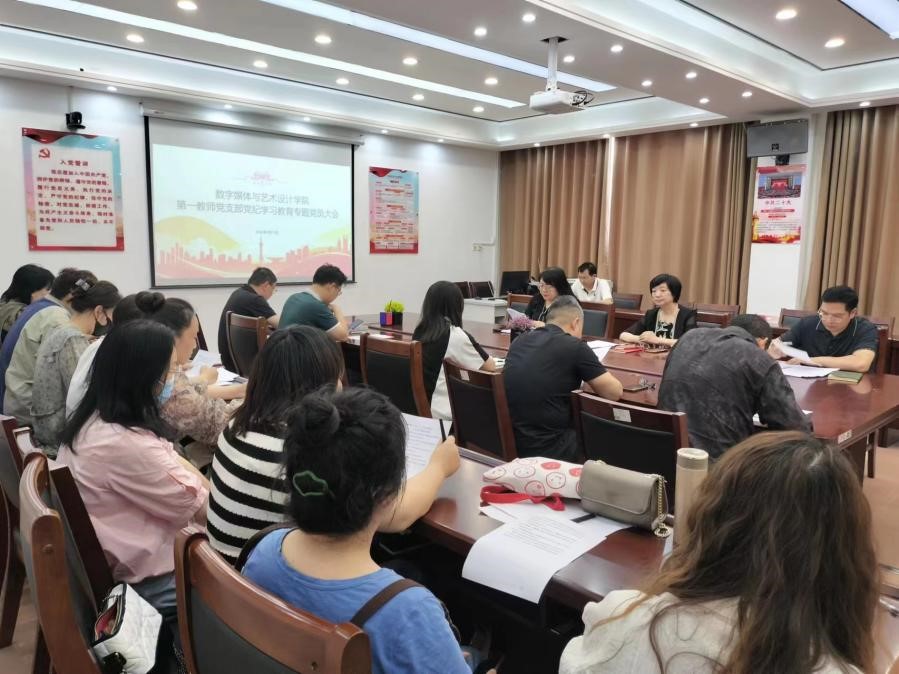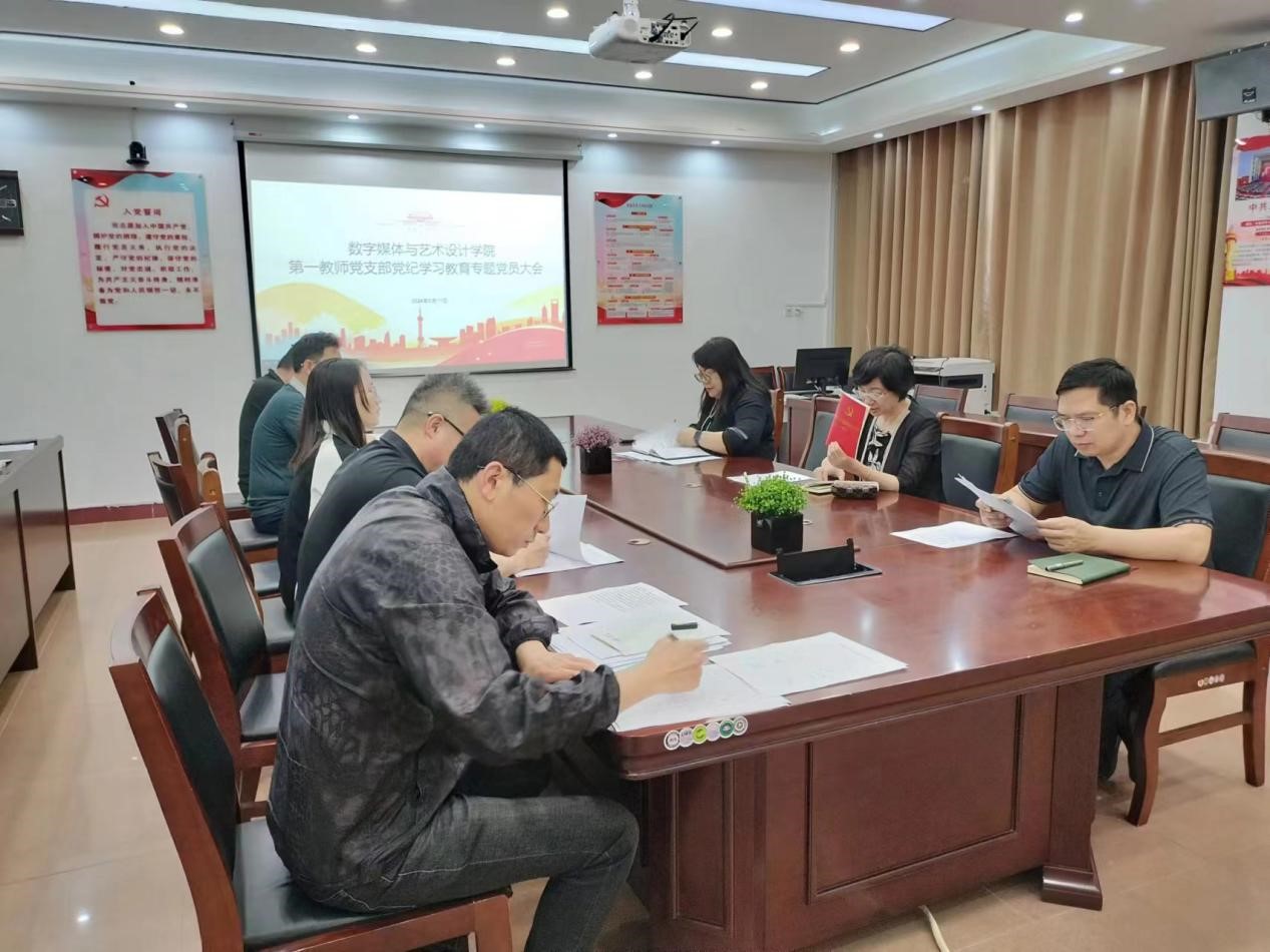 5月11日上午10时,数字媒体与艺术设计学院第一教师党支部在8号教学楼小会议室开展党纪学习教育党员大会,会议由支部书记孟祥芸主持并讲话,全体教师党员参加。