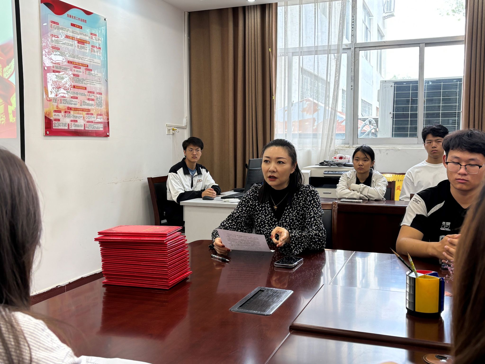 本届学生党建工作站换届情况。经过自愿报名、简历筛选、综合审查、面试、公示等环节最终确定。由张睿老师为新一届站长、副站长及各部门负责人颁发聘书。
