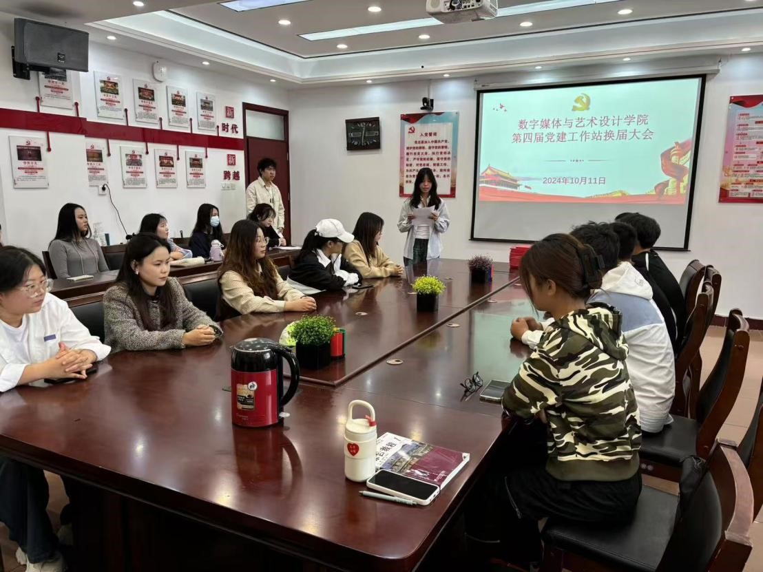 本网讯(通讯员/李伟朝)10月11日,数字媒体与艺术设计学院学生党建工作站换届大会在8#218会议室召开。数字媒体与艺术设计学院党委专职组织员张睿出席,第四届学生党建工作站全体成员参加会议。会议由第四届学生党建工作站站长主持。