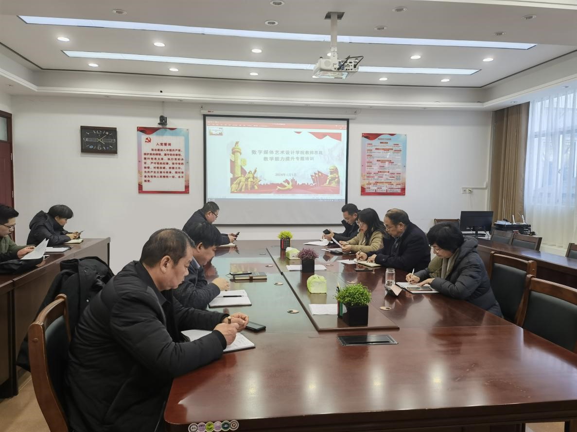 (特约记者/李云茹)1月4日,数字媒体艺术设计学院教师思政教学能力提升专题培训在8号楼二楼小会议室举行。院长薛庆吉、党委书记李慧、教学院长孟祥芸以及思政课专职教师参加培训。