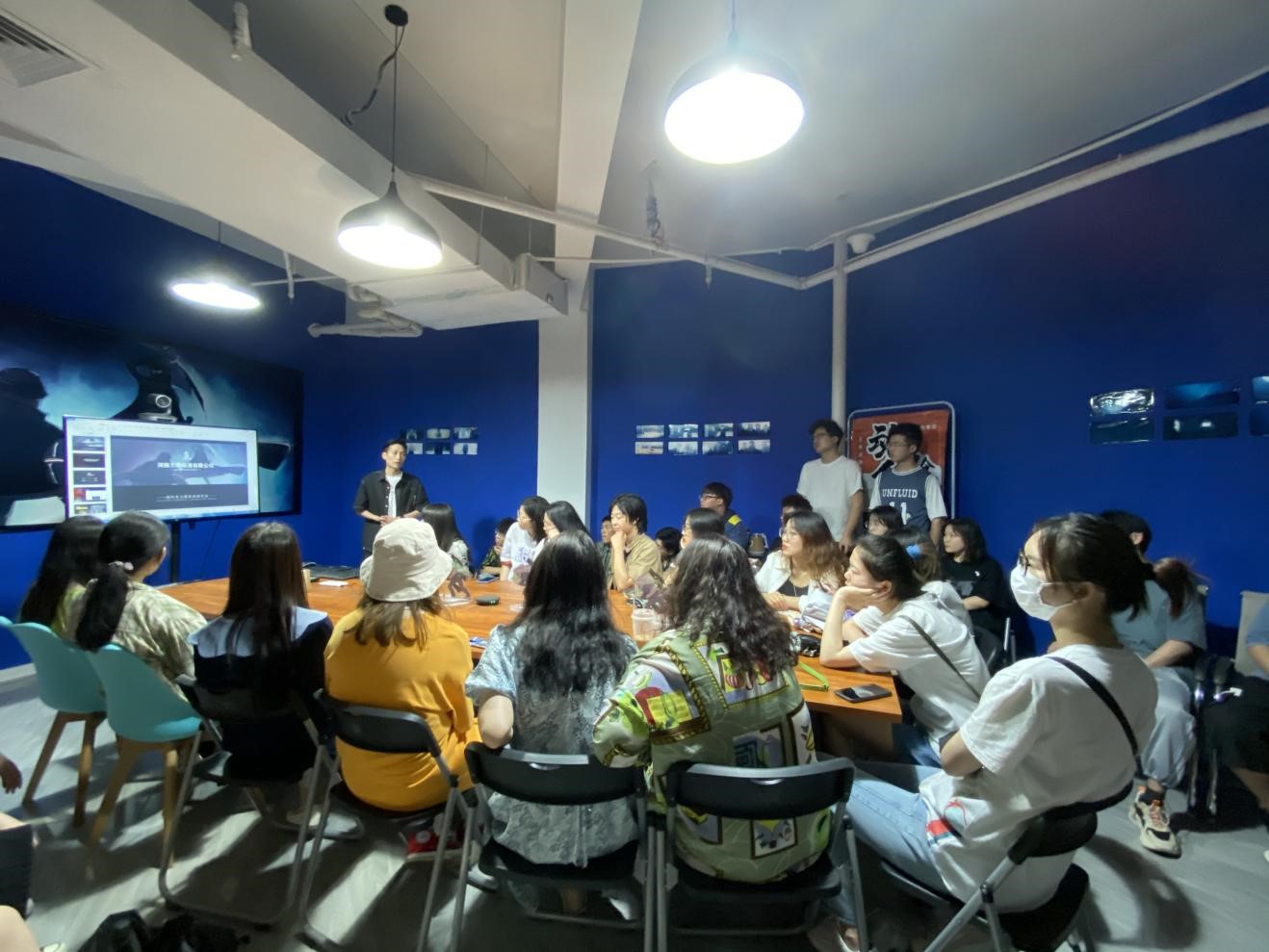 第三、参观浏览公司完毕,由栗总为同学们做了将近一个半小时的动画创作经验分享。主题围绕:怎么才能做出一个高完成度的动画作品?并围绕该流程介绍了,艾思动漫近年来从事参与的,众多国内外(日美)爆款动画项目作品内部制作一手资料,为同学们展示了目前国内最一线的动画工业创作各环节资料,直观的了解目前正在开发中的作品状态,让同学们可以直击一线制作现场,大师兄结合个人从业经历,为学弟学妹分享了个人一路走来的经历和心得。