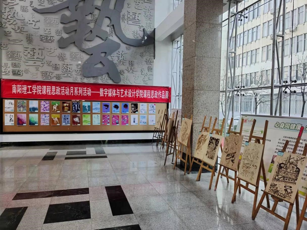 12月20日,南阳理工学院课程思政月系列活动中,数字媒体与艺术设计学院“课程思政”作品汇报展在8号楼一楼大厅举办,院领导班子成员出席参观了作品展,并对学院专业课程“课程思政”工作成果予以肯定。