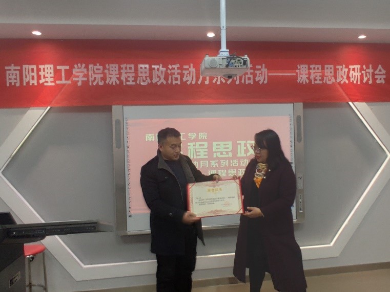 期间数字媒体艺术设计专业的教师们就设计素描、设计色彩、图形创意、数字影像合成、UI界面设计等专业课程进行了思政教学案例分享。并最终评选出薛文勇老师为最佳主讲人,孟祥芸副院长为薛文勇老师颁奖。