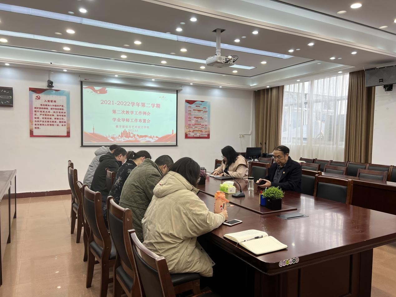 为扎实推进“观念能力作风建设年”活动,切实加强教师教学管理,有效提升教师师德素养和教学能力水平,全面保障本学期教学工作顺利开展,数字媒体与艺术设计学院在小会议室召开2021-2022学年度第二学期第二次教学工作例会和学业导师安排工作会。院长薛庆吉、教学院长孟祥芸、各教研室主任及教务办老师参加了本次会议。
