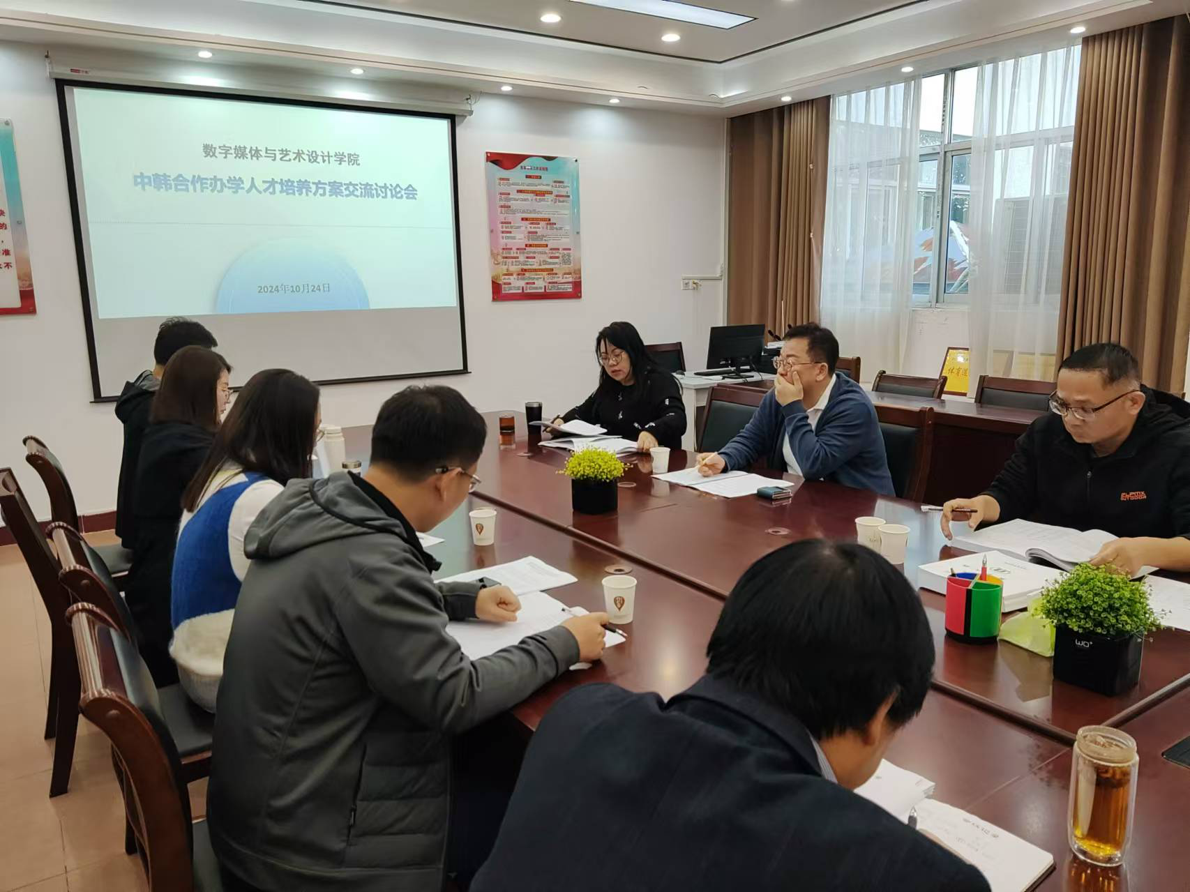 10月24日下午,数字媒体与艺术设计学院召开中韩合作办学人才培养方案交流研讨会。国际交流处国际交流合作中心王延明科长、中外合作办学项目数字媒体艺术设计专业及其他即将申请中韩合作办学各专业负责人参加本次会议,会议由学院副院长孟祥芸主持。