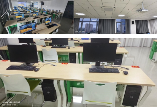 实验室主要配置有51台台式计算机用于教学。计算机( Dell Precision 3640,CPU:I7-10700 2.9G 内存:16G 硬盘:256G SSD 显卡:AMD Radeon Pro W5500 22寸显示器)、投影仪一台、音响系统一套、教学系统一套。该实验室计算机已接入校园网。开设课程有影视制作与合成开设课程有图形设计、计算机图形三维造型、新媒体设计、交互设计、三维建模与材质、程序设计、数据库原理与应用、影视制作、AI、计算机图形、PS、AI、An、Ae、PR、visual Studio、Unity、3ds Max、C#程序、数字动画渲染、计算机图形。