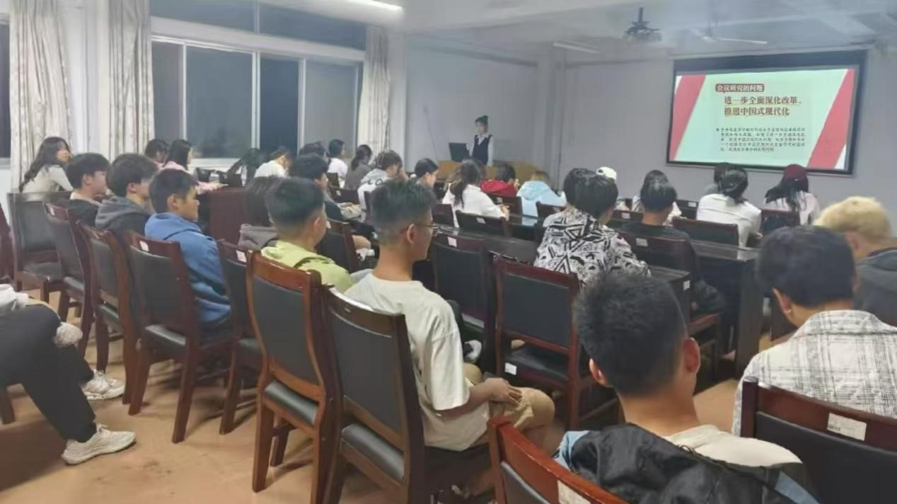 本网讯(记者/陈苗苗 学生记者/冯可鑫)为深入学习贯彻党的二十届三中全会精神,提升学生的政治理论素养,点燃爱国情怀。我院于10月20日组织各班级开展“学习贯彻党的二十届三中全会精神”主题班会及答题活动,全院学生参加。