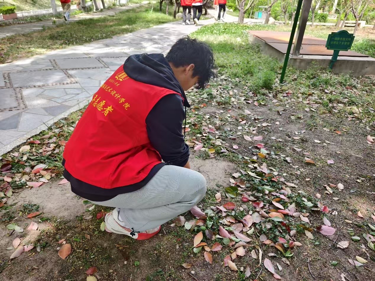 本网讯(记者/陈苗苗 学生记者/王婷婷)为通过实际行动弘扬劳动精神,培养学生的社会责任感和奉献意识,营造整洁、舒适的校园环境,提升校园文化氛围,4月13日14:00-16:00,我院在南阳理工学院东南校区书香园开展“劳以修身,恩润校园”打扫书香园志愿活动。