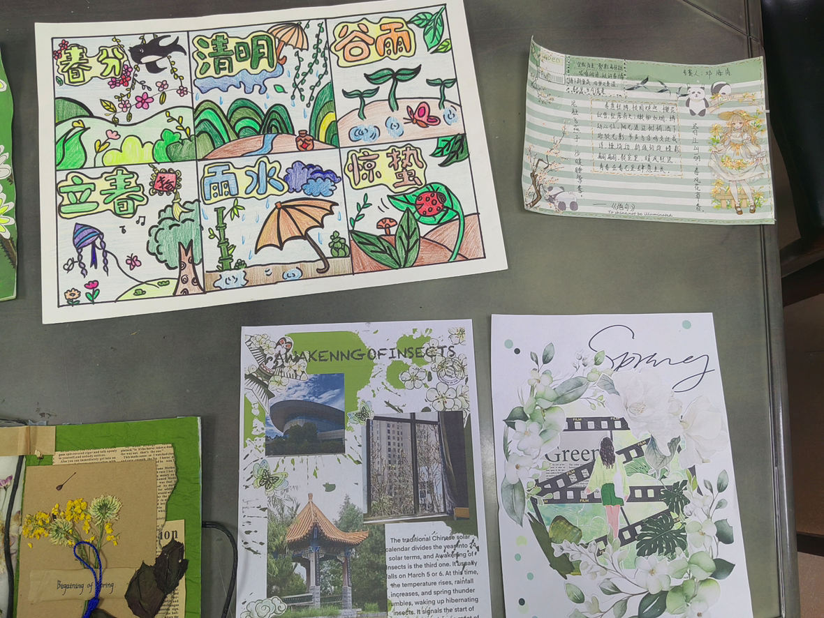 本次活动同学们采用手工制作的方式,他们挑选自己心仪的树叶和材料,通过撕,贴等步骤,一片片树叶就被巧妙地镶嵌在了作品上,每一幅作品都独一无二,承载着同学们对春天的热爱和留恋。参与学生表示:“通过这次活动,我不仅更加了解了传统节气文化,还锻炼了自己的动手能力和创造力。今后,我会继续传承和弘扬中华优秀传统文化。”