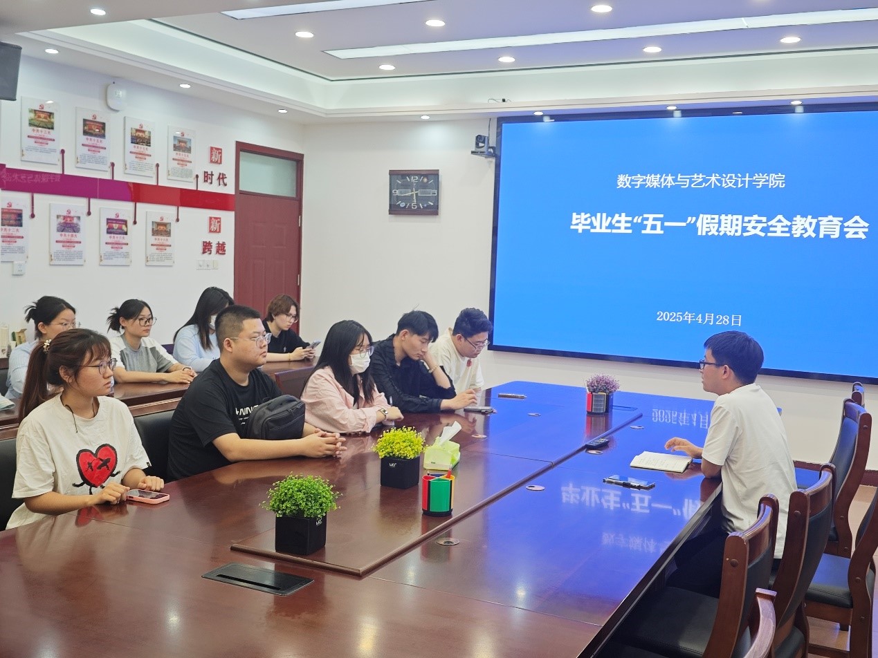 “五一”假期临近,为切实保障毕业生人身财产安全,数字媒体与艺术设计学院于4月28日下午在八教二楼小会议室召开毕业生专题安全教育会。毕业班主要学生干部参会,会议由毕业班辅导员耿乾老师主持。