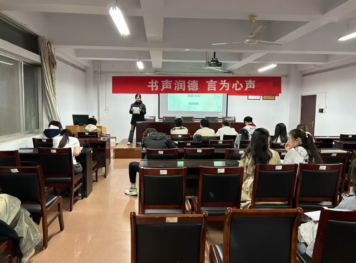 本网讯(记者/陈苗苗 学生记者/孙可 沈续怡)粗缯大布裹生涯,腹有诗书气自华。为营造书香校园文化氛围,激发青年学子阅读热情,我院于2025年4月7号—4月12日在8211举办“书声润德,言为心声”荐书演讲比赛。