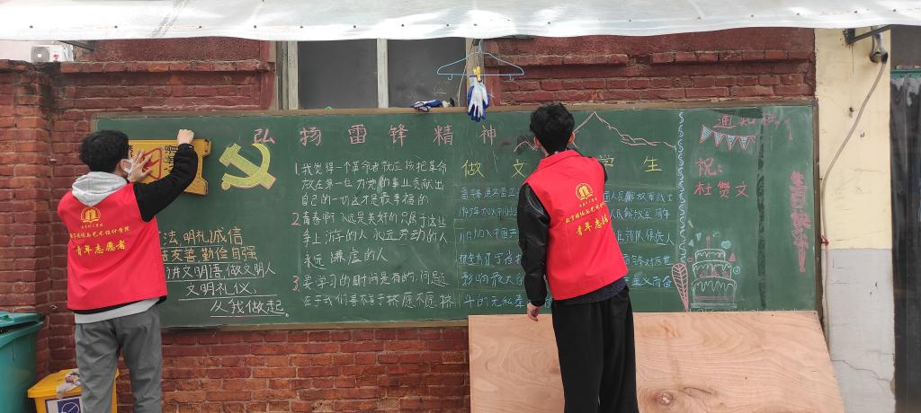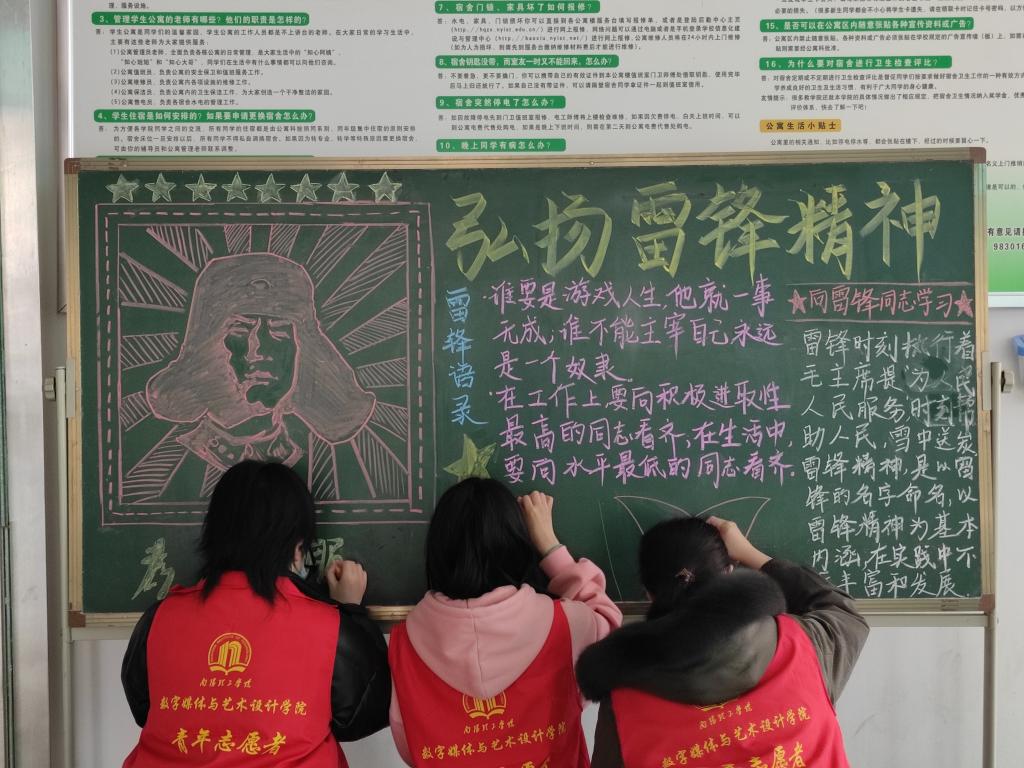 本网讯(记者/雷霞 学生记者/刘鹏程 于文静)为充分了解雷锋精神,弘扬雷锋无私奉献的精神,充分展示当代大学生朝气蓬勃、健康向上的精神风貌。我院于3月13日上午10时在各宿舍公寓楼下举办“弘扬雷锋精神做文明学生”主题板报活动。