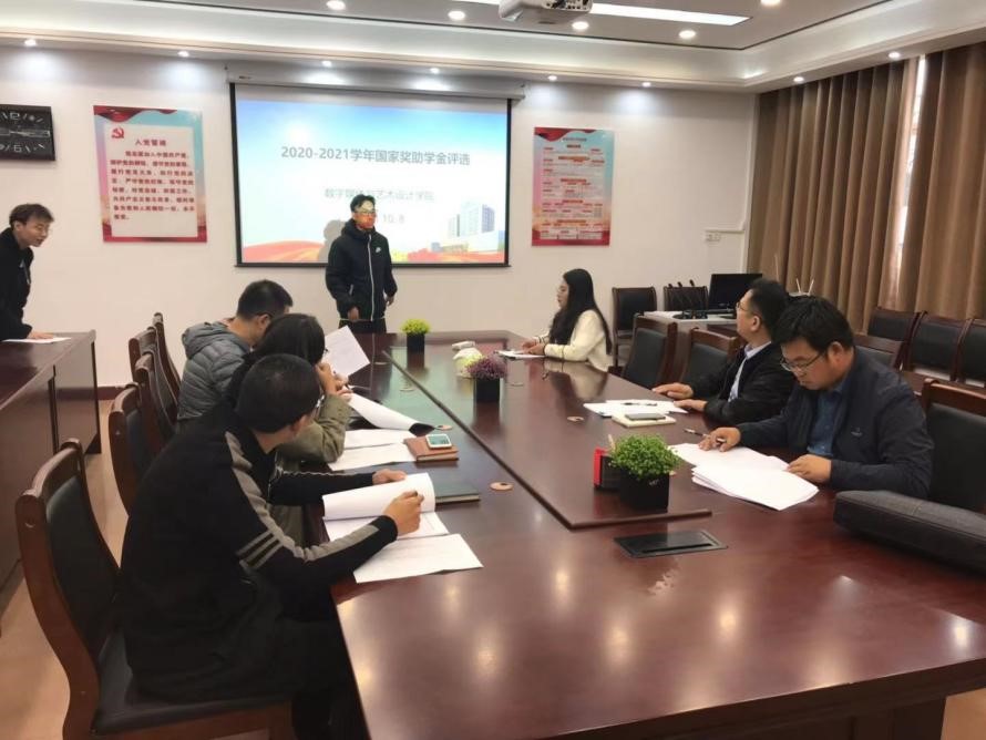 本网讯(记者/雷霞学生记者/尹晓莹张香晴)为调动学生学习积极性,增强学生竞争意识,促进学生德、智、体、美等方面全面发展和优良学风的形成,数字媒体与艺术设计学院于10月8日下午三点在八教二楼小会议室进行2021年国家奖学金和中込奎一奖学金评选工作。此次参与评选的优秀学生共计三十余人,依次进行演讲汇报。学院评委由汤中科、李天峰、谢茜、刘翔、张天赐、袁思源、唐振海、雷霞几位老师担任,他们秉持着认真、公平、专业的评选精神,听取了学生们的现场汇报。