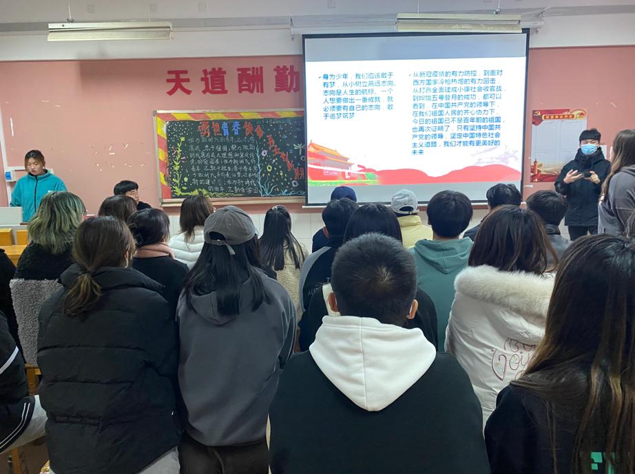 此次活动以“勇立创新潮头,勇担青春使命”为主题,通过观看相关视频,让各班同学深入贯彻学习河南省委书记楼阳生先生代表中国共产党河南省第十届委员会在中国共产党河南省第十一次代表大会上的重要讲话精神,深入学习党史。随着视频的播放和深刻的发言,同学们态度积极高涨,各小组热情讨论如何通过自身努力与行动做到勇担青春使命,同学们也积极讲述自己的所感所触。最后,由各班团支书讲话做总结寄语。
