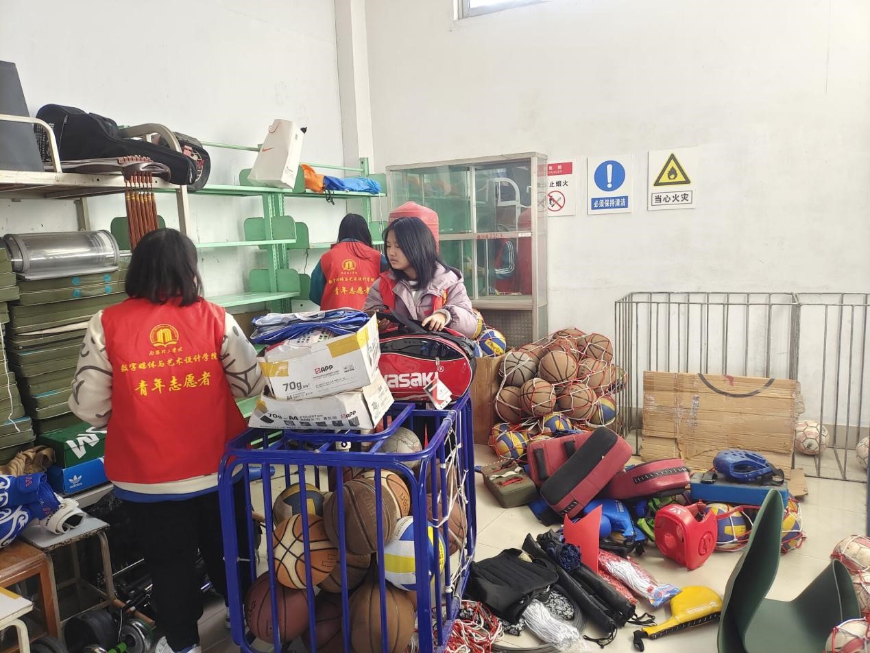 本网讯(记者/雷霞 学生记者/侯雨杰 周嘉怡)为了改善器材室内乱摆乱放等现象,让同学们在体育课堂中拥有一个良好的器材借用环境,也为了更好地展现出本校的校容校貌。我院15位志愿者于12月3日14点30时在东南校区体育器材室举办“用之有度,行之有素”主题志愿活动。