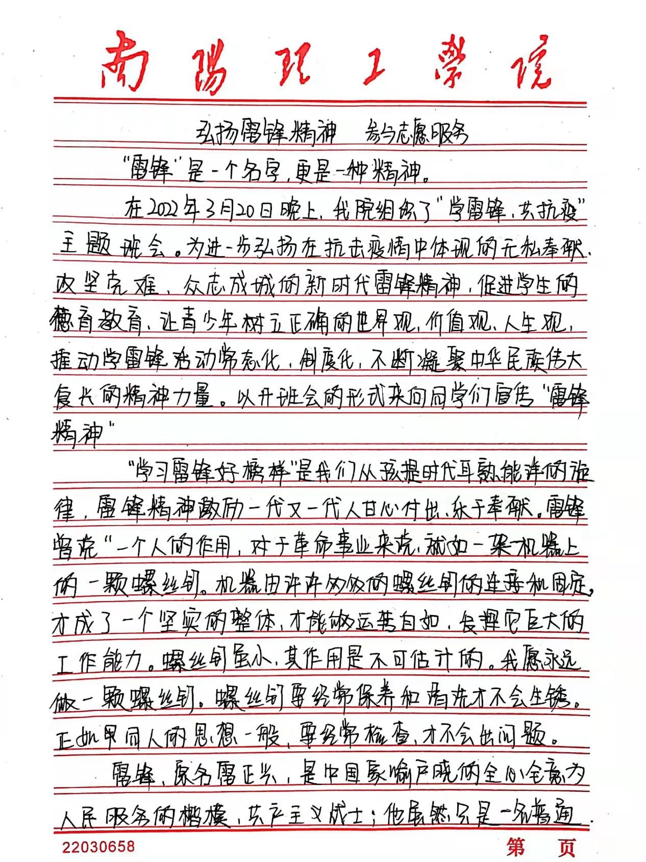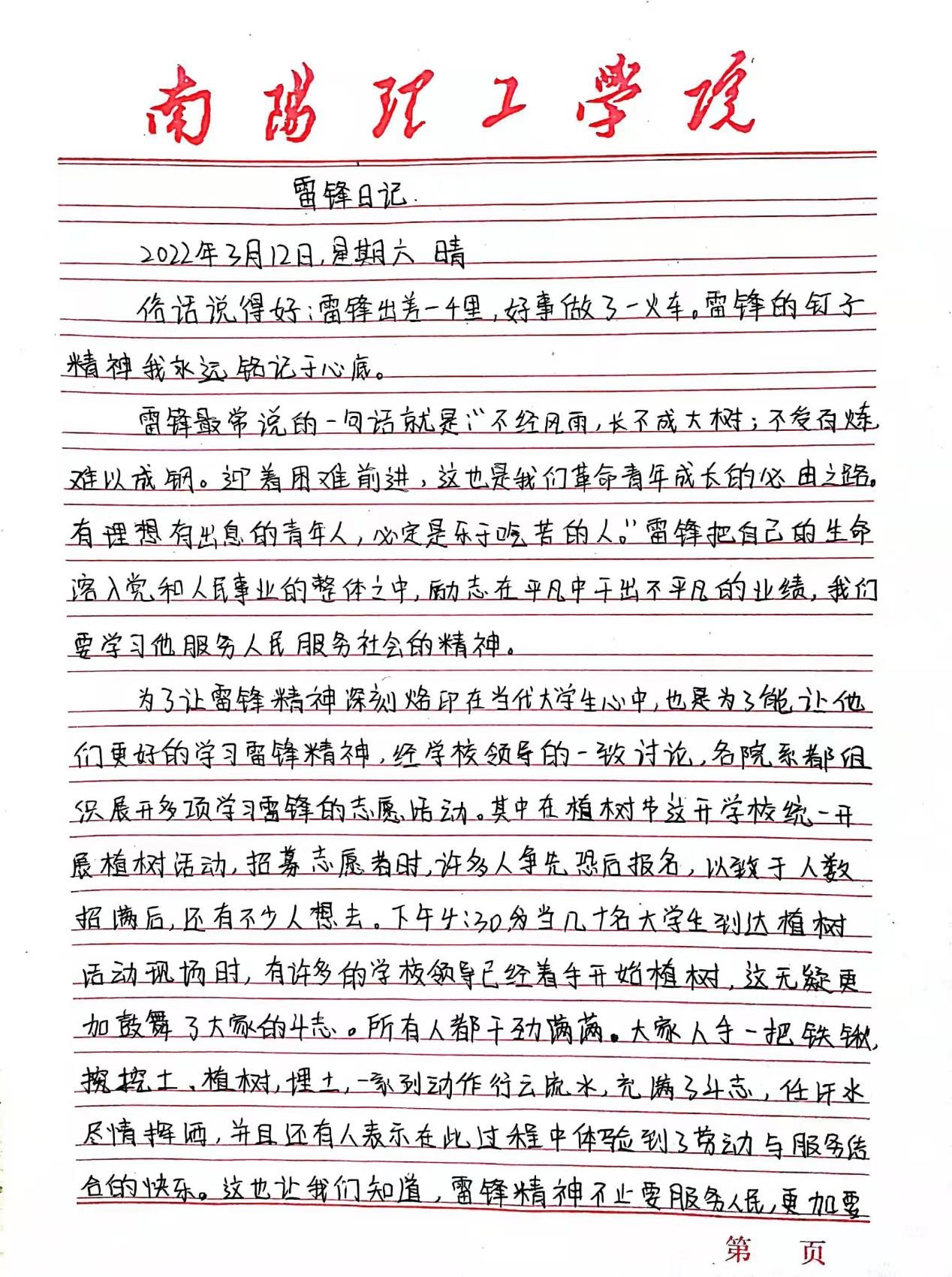 本次活动以“五个一”志愿服务活动为主体和载体,续写一篇新时代“雷锋日记”。通过同学们积极续写雷锋日记,记录身边的“雷锋”故事、传承“雷锋”精神,充分展现新时代青年大学生勇挑重任的精神面貌。