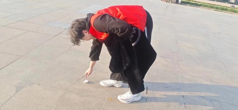 活动人员听从组织者安排,统一集合后穿上红色马甲前往解放广场,到达场地后活动人员依次散开,不扎堆不聚集,随处都可以看到志愿者们忙碌的身影。活动长达两个小时,在劳动过程中,志愿者们发扬不怕脏不怕累的精神,对道路、花圃等地方的垃圾进行了细心清理。活动结束后,志愿者们统一叠放红色马甲归还组织者,再由组织者归还到八教二楼学生办公室。