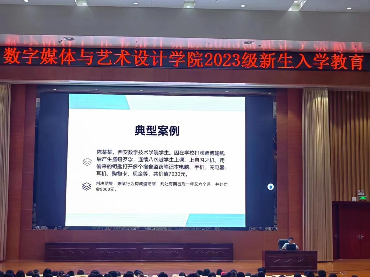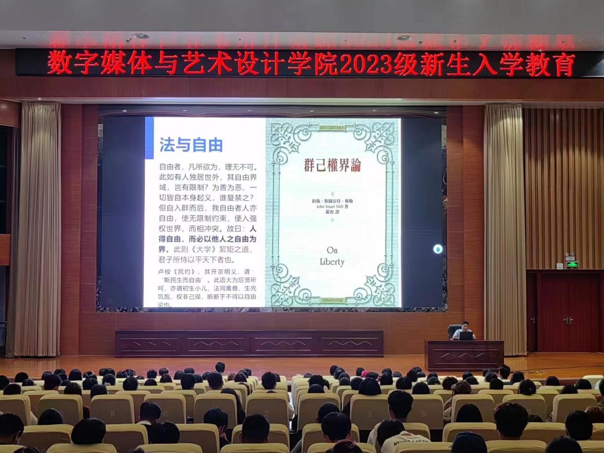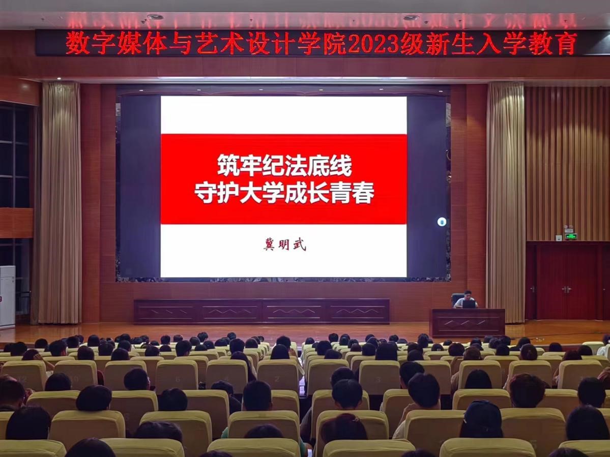 本网讯(记者/陈苗苗 学生记者/李可)为认真落实教育系统“八五”普法规划,扎实推进启航教育工程,切实提高大学生法纪意识,数字媒体与艺术设计学院于2023年9月17日19:30在第三学术报告厅开展2023级新生入学法制教育讲座。邀请冀明武博士担任主讲,全体2023级新生参加。