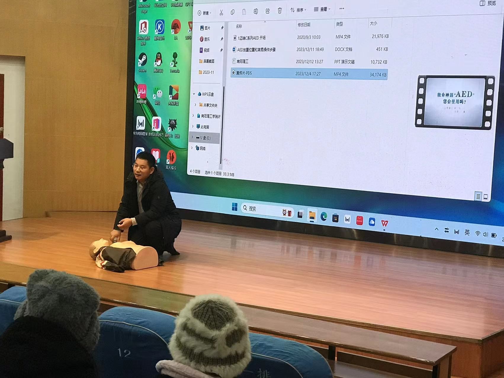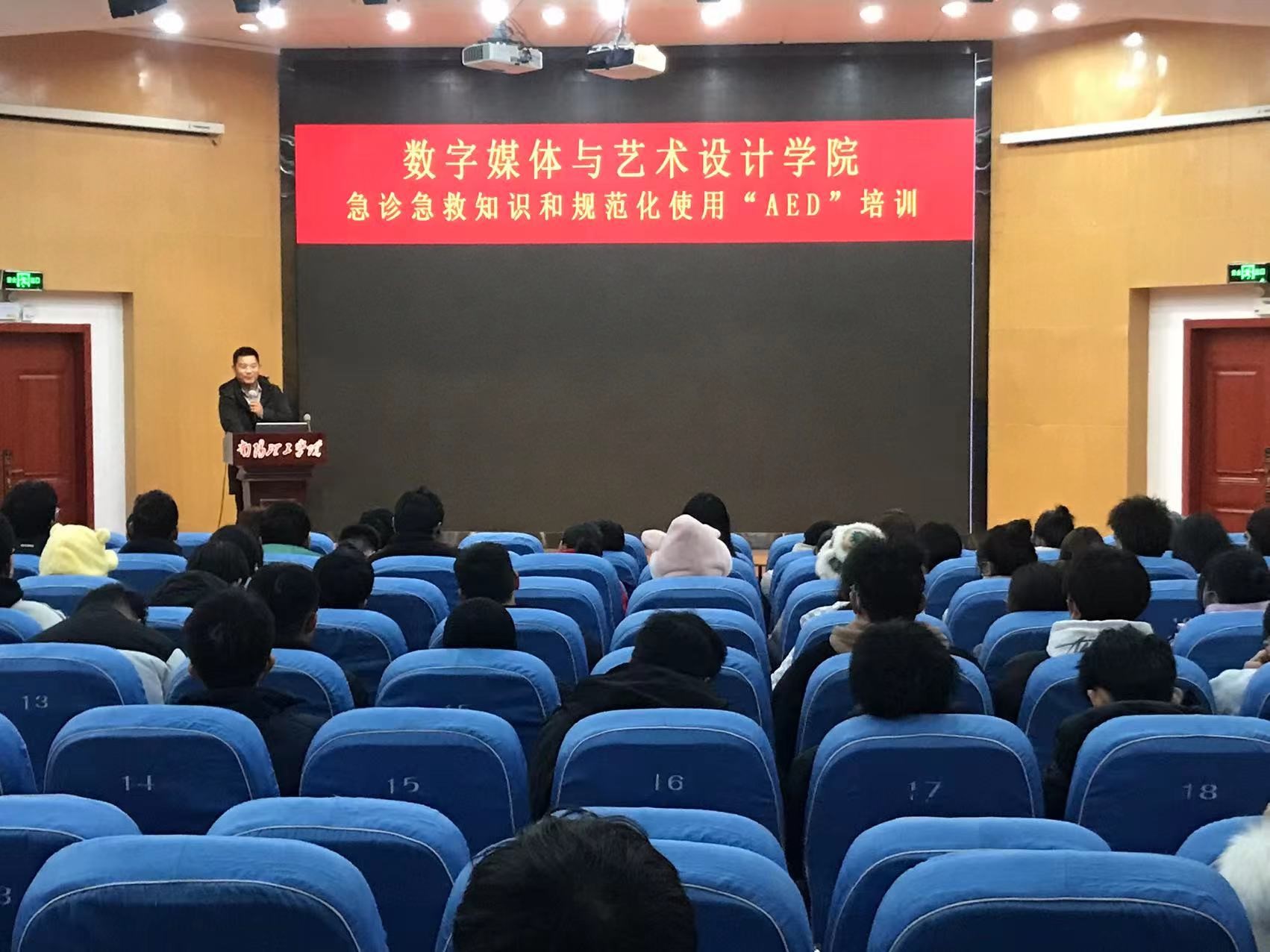 为了普及急诊急救知识,掌握自动体外除颤器(AED)的使用方法,提高师生急救技能,2023年12月12日下午,数字媒体与艺术设计学院在领创空间二楼报告厅举行急救急诊知识和AED规范使用技能培训。
