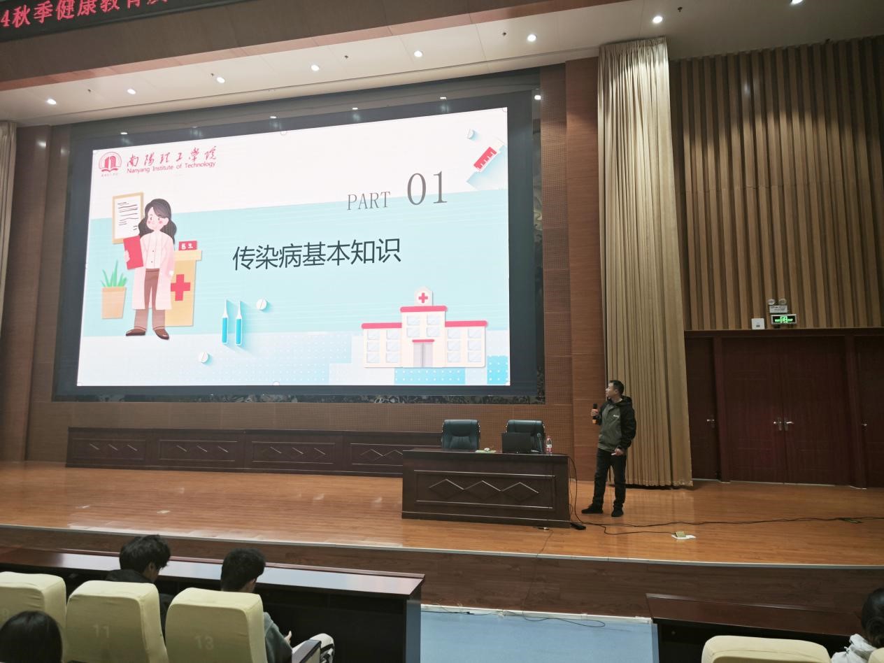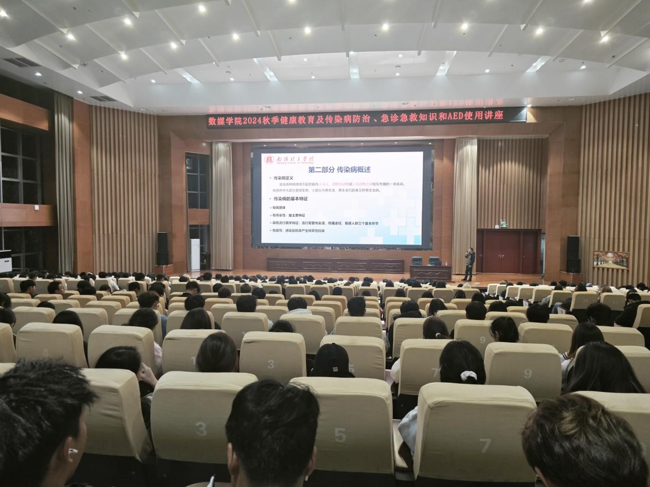 本网讯(记者/陈苗苗 学生记者/孙可)为提高广大师生对秋季传染病的认识和预防能力,保障校园公共卫生安全,我院于10月25日19点在第三报告厅开展秋季健康教育及传染病防治、急诊急救知识和AED使用讲座,本次讲座邀请校医院司军峰老师主讲,学院学生干部及2024级全体新生参加。