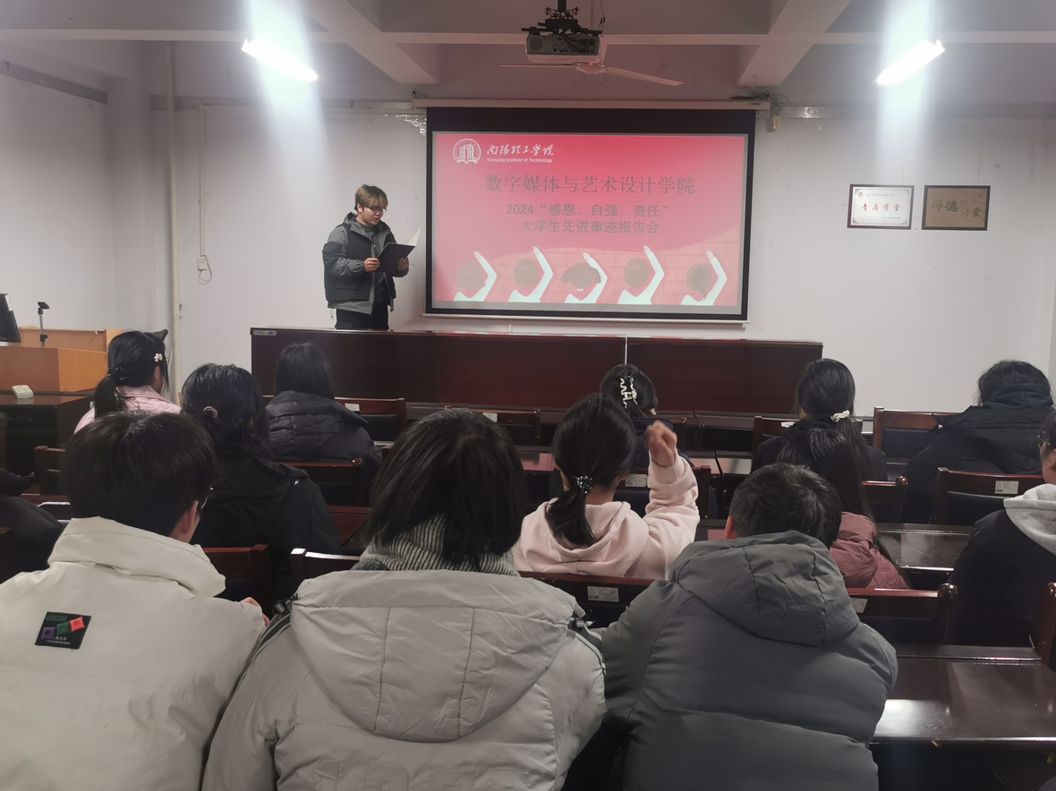 本网讯(记者/陈苗苗 学生记者/孙可 史怡凡)为充分发挥榜样力量,激励广大学子砥砺奋进、全面提升综合素质,我院于12月22日下午在八教二楼大会议室成功举办第十六届“感恩、自强、责任”大学生先进事迹报告会。