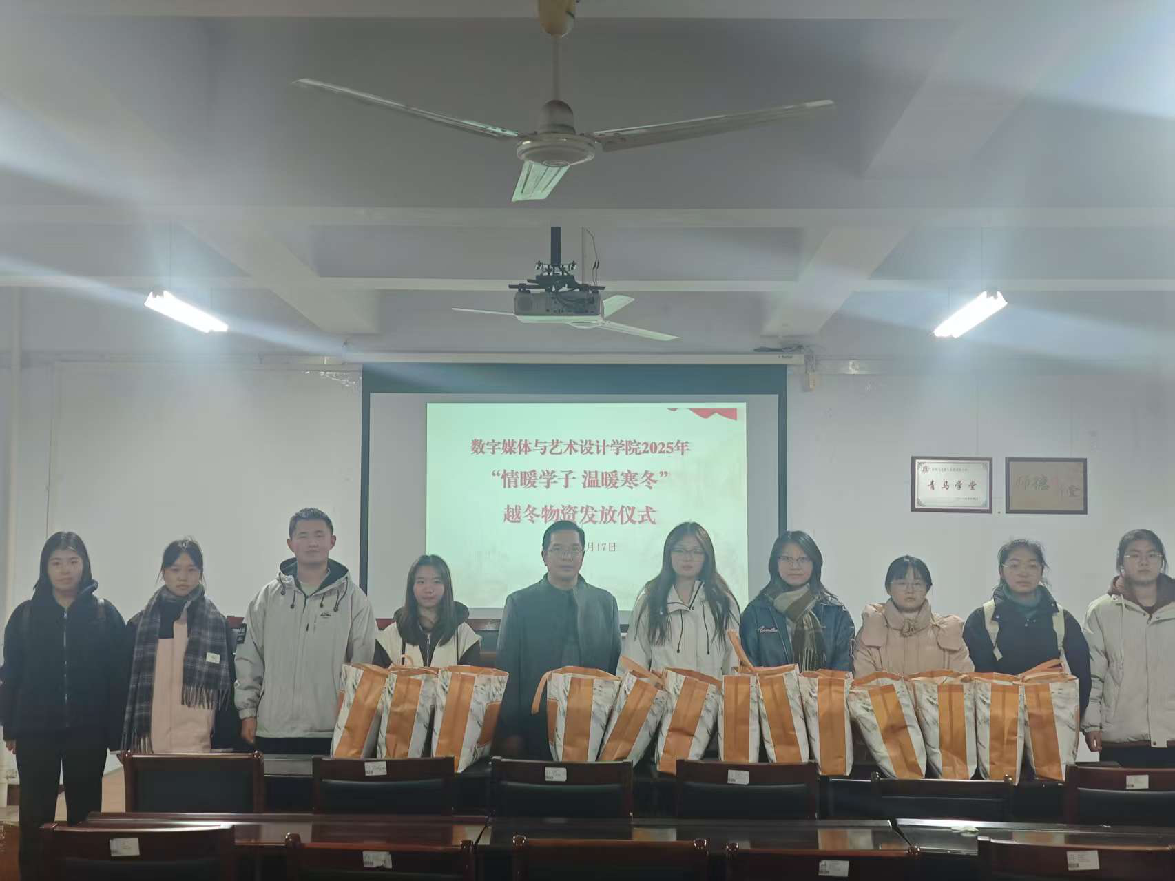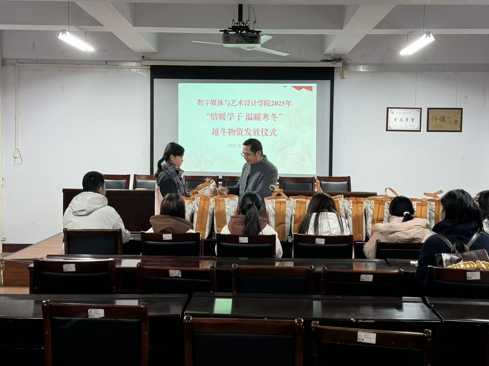 寒冬将至,暖意先行。为切实保障家庭经济困难学生温暖过冬,传递学院的关怀与牵挂,11月17日,数字媒体与艺术设计学院在学院大会议室举行2025年“情暖学子 温暖寒冬”越冬物资发放仪式。汤中科书记及相关辅导员出席仪式,与受助学生代表亲切交流并发放越冬物资。