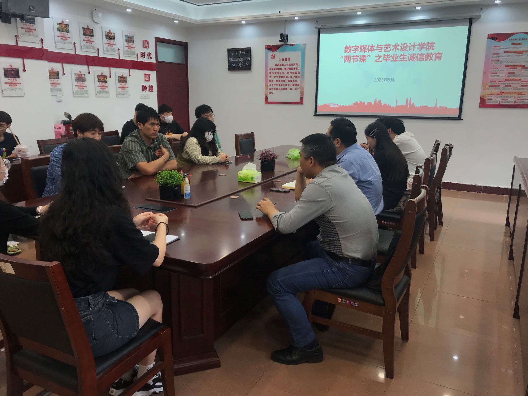 为进一步引导2023届毕业生树立诚信观念,提高诚信意识,5月4日,我院在8教2楼大会议室开展“两节课”活动之毕业生诚信教育活动。
