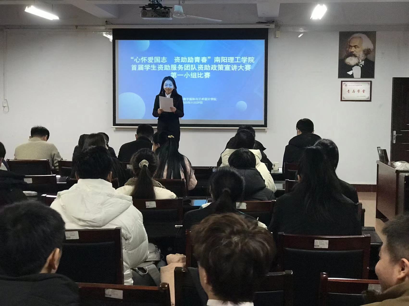 为全面学习贯彻习近平新时代中国特色社会主义思想,深入践行党的二十大精神,全面宣传国家和学校的学生资助政策,提高学生资助服务团队资助政策水平和资助服务能力,11月29日,由数字媒体与艺术设计学院承办的南阳理工学院首届学生资助服务团队资助政策宣讲大赛第一小组比赛在8教2楼大会议室举办。