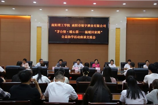 5月24日上午,由南阳理工学院关心下一代工作委员会、学生资助管理中心、教育发展基金会和南阳市银宇酒业有限公司联合举办的“茅台情 暖心票——温暖回家路”公益助学活动座谈交流会在会议中心成功举行。本次活动捐赠公益金3万元,资助100名家庭经济困难学生春节返乡车票费用,帮助家庭经济困难学生新春佳节与家人相聚团圆。