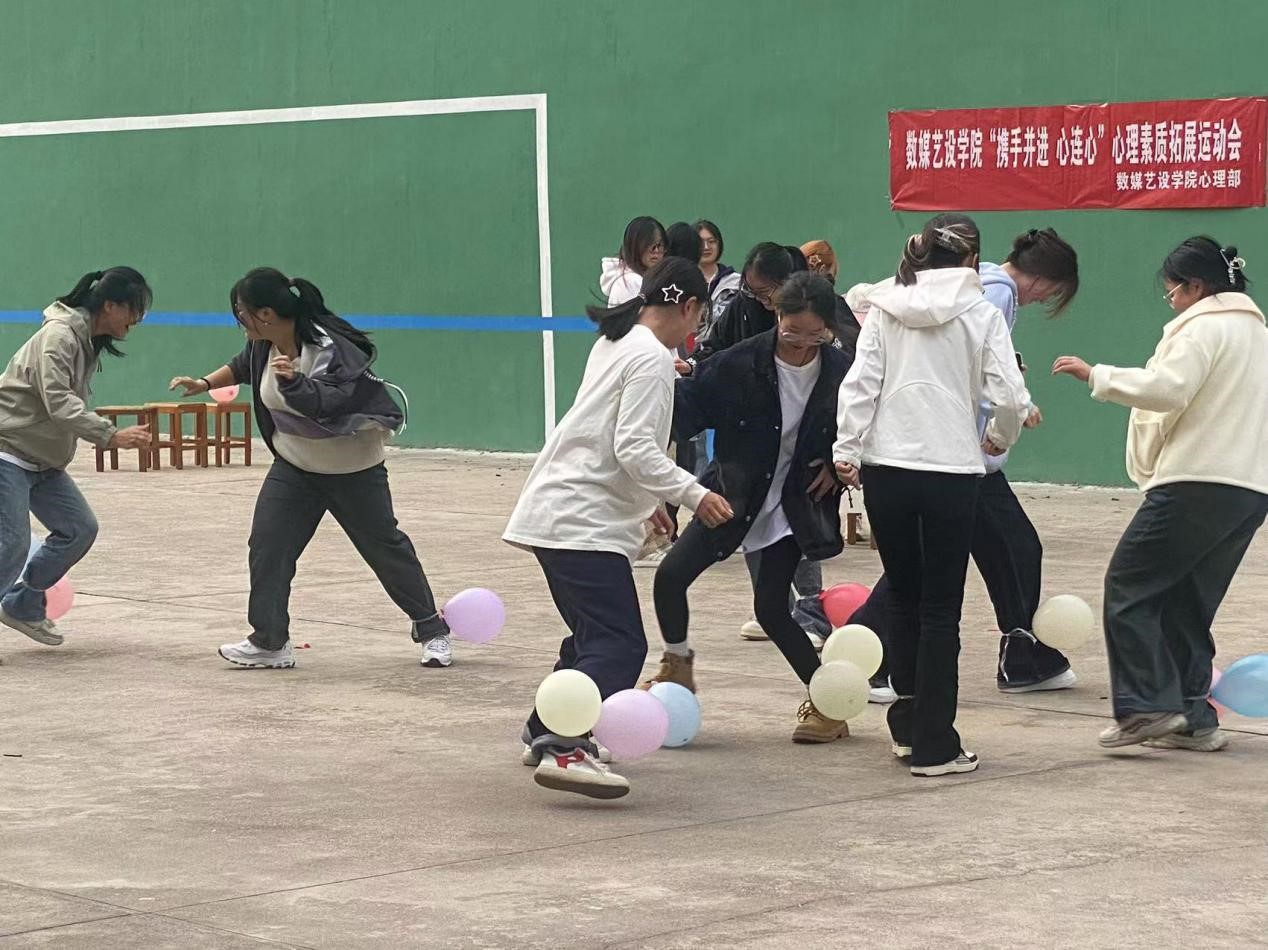 本网讯(记者/陈苗苗 学生记者/孙可)为了提高学生的心理素质和团队合作能力,数字媒体与艺术设计学院于10月26日下午在下沉广场举办2024年心理素质拓展运动会,2024级新生参加。