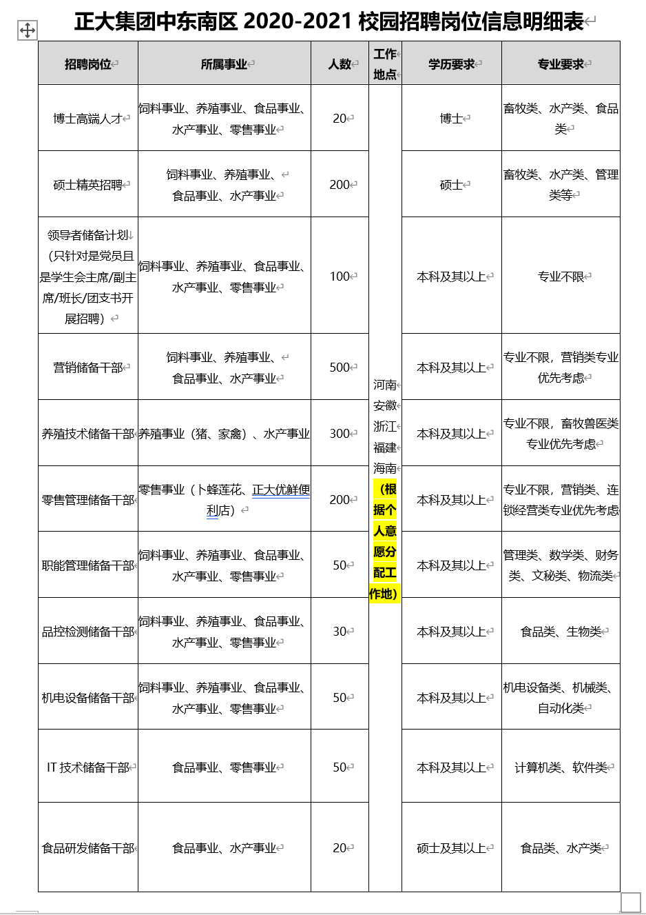 正大集团中东南五省区2020-2021校园招聘简章