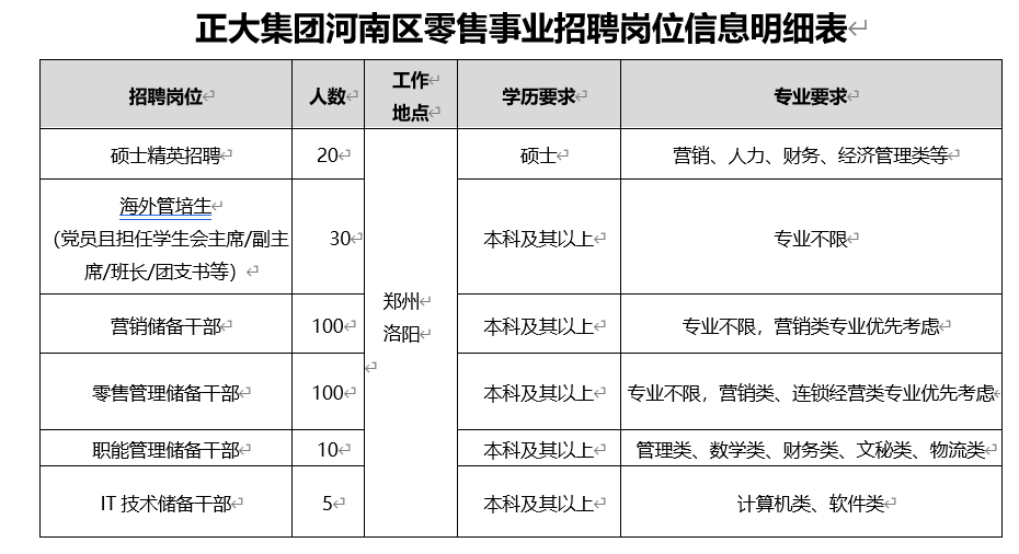 正大集团中东南区招聘中心