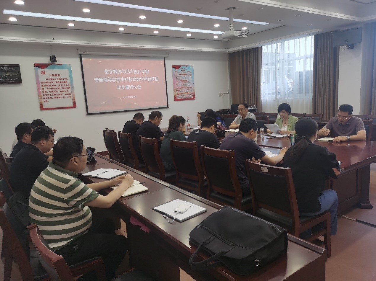 本网讯(特约记者/宋弘)为了进一步深入开展学习贯彻习近平新时代中国特色社会主义思想主题教育,在我校迎接本科教育教学审核评估的关键时期,将开展主题教育与学院业务发展工作高度融合,引导党员干部学思想、强党性、重实践、建新功,近日,数字媒体与艺术设计学院召开迎接本科教育教学审核评估党员干部誓师大会。
